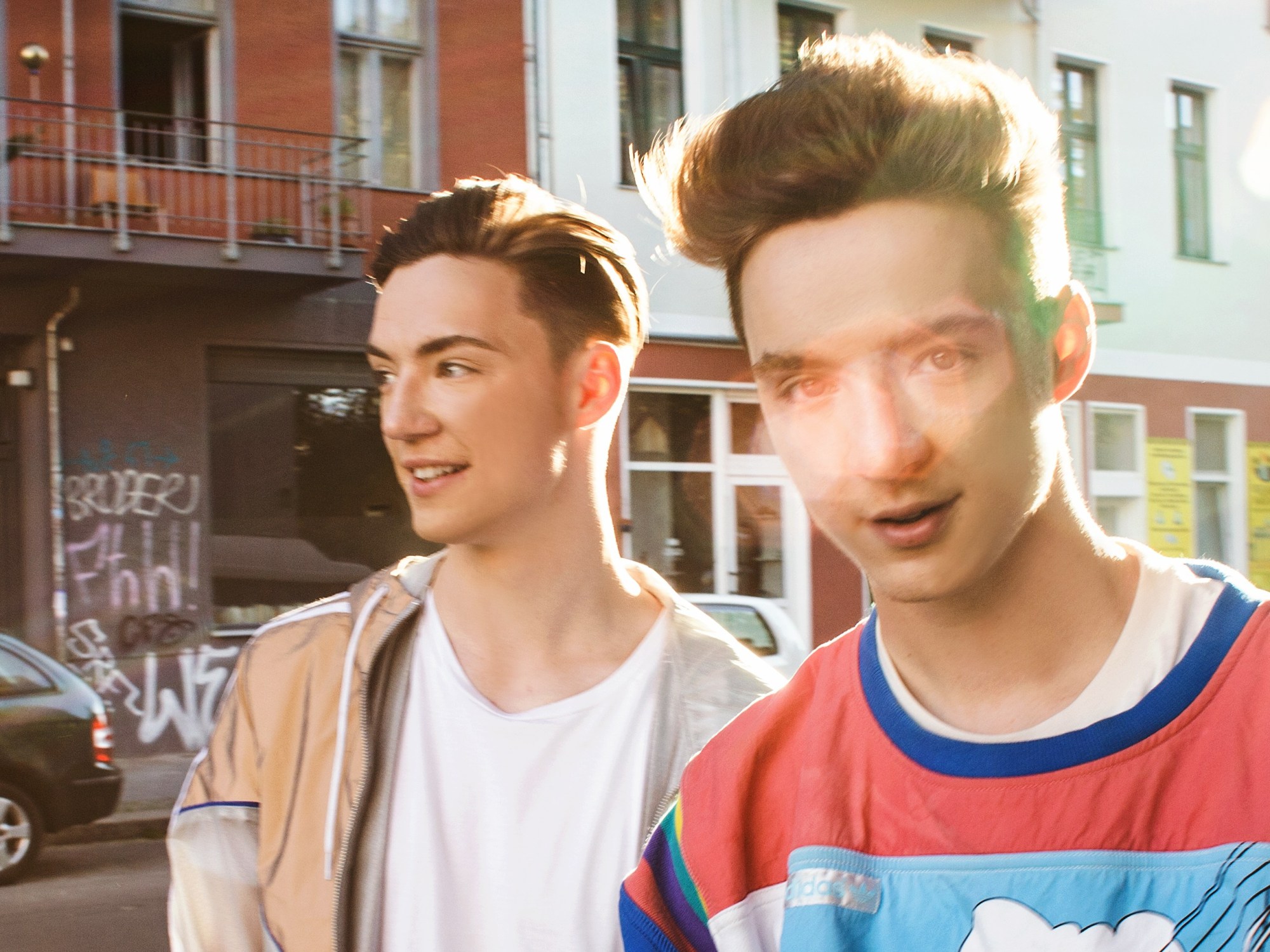 Das sind die Lochis. Sie sind 19 Jahre alt. Woran man die Lochis unterscheiden kann, weil sie Zwillinge sind? Heiko ist der Typ der wegschaut mit dem weißem T-Shirt. Roman ist der Typ der in die Kamera schaut. Die meisten Mädchen mögen ihn sehr und ein paar Mädchen Heiko, aber es gibt auch Jungs die Die Lochis mögen, aber es sind sehr wenige.